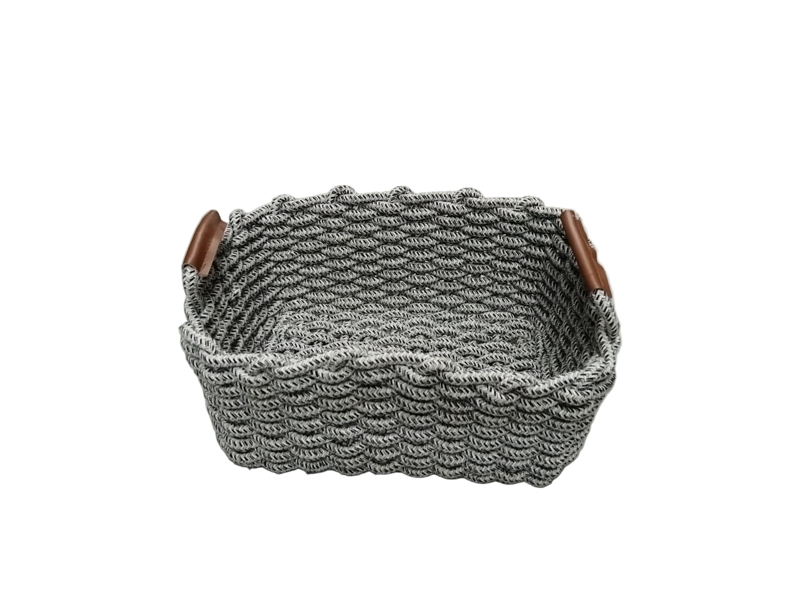 Faux leather side handles for easy carrying on the larger basket